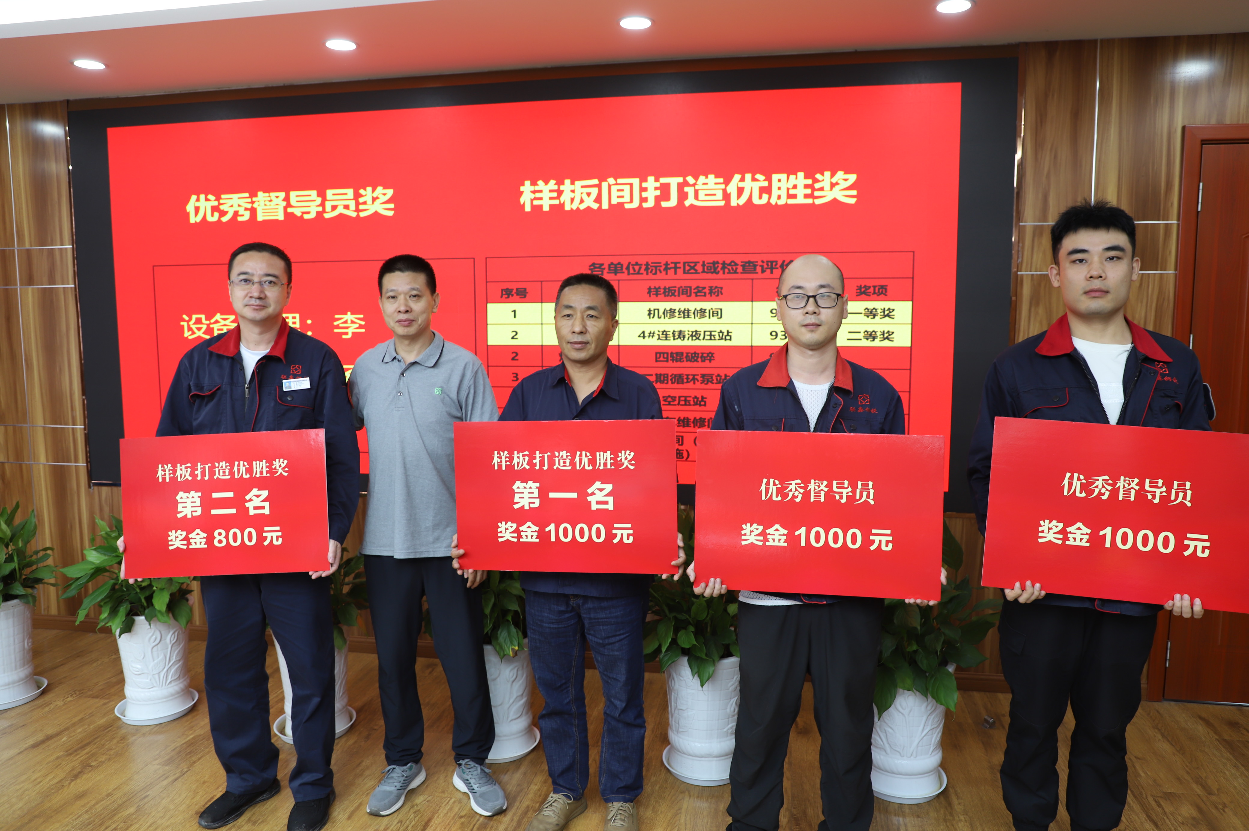 首先,动力厂作为分厂代表汇报了7月份项目推进成效;随后推进办对第一阶段整体工作进行系统总结,知为先咨询团队从专业视角展开总评并公布阶段性评比结果。个人奖项方面,李潜、杨泽润两位员工获评“优秀督导员”称号;“样板区打造奖”评选中,烧结厂荣获一等奖,炼钢厂获二等奖;“优秀单位奖”评选中,烧结厂摘得“设备管理提升羚羊奖”桂冠,动力厂获得二等奖。