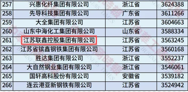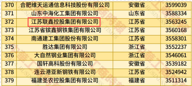 江苏联鑫控股集团有限公司位列2025中国民营企业500强第372位,2025中国制造业民营企业500强第261位。
