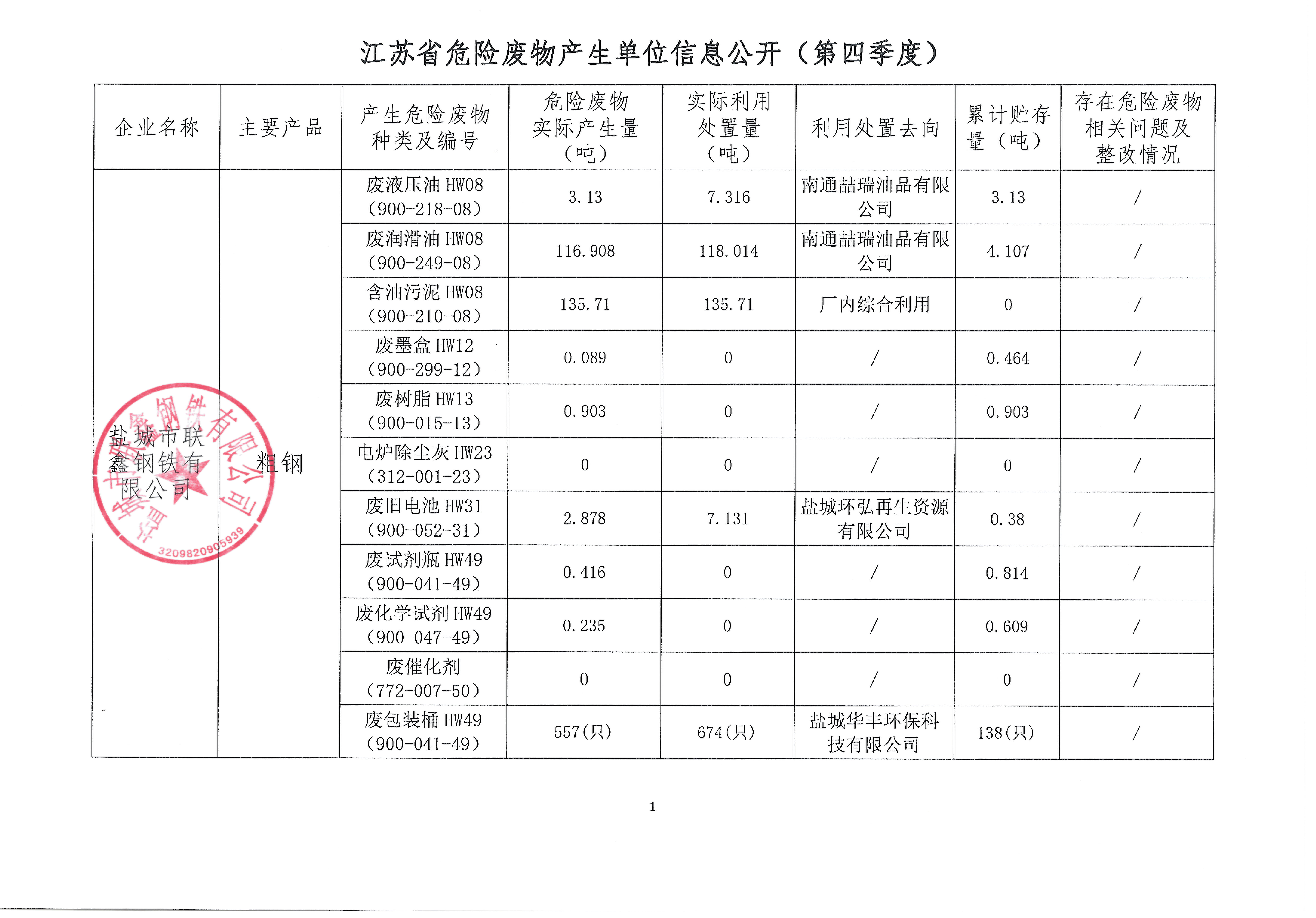 江苏省危险废物产生单位信息公开(第四季度)